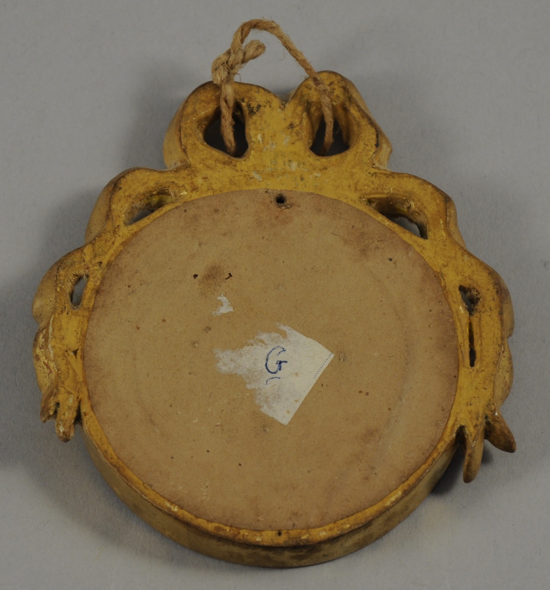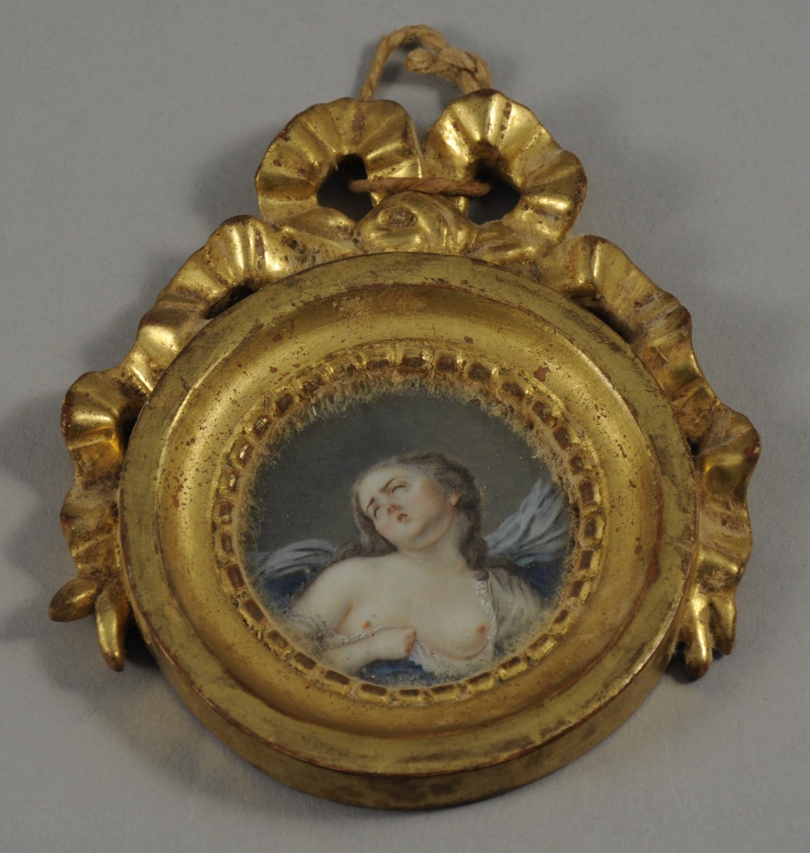 Gouache. Cadre en bois sculpté d'un noeud de ruban, de style Louis XVI.