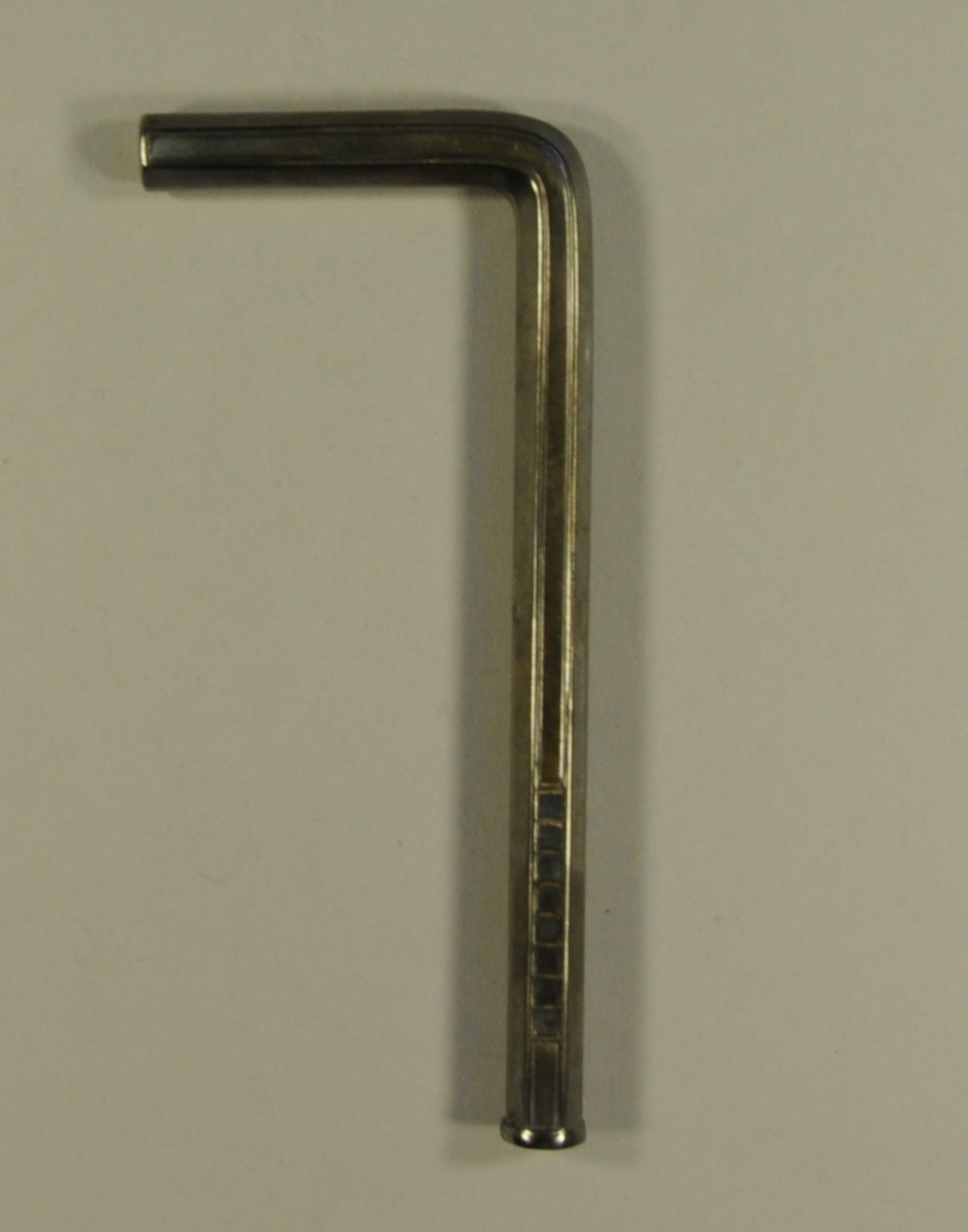 MANCHE D'OMBRELLE en métal argenté. Section octogonale, décor géométrique d'esprit Art Déco. Dans son coffret garni de tissu blanc marqué J. Gaujard Orléans.
