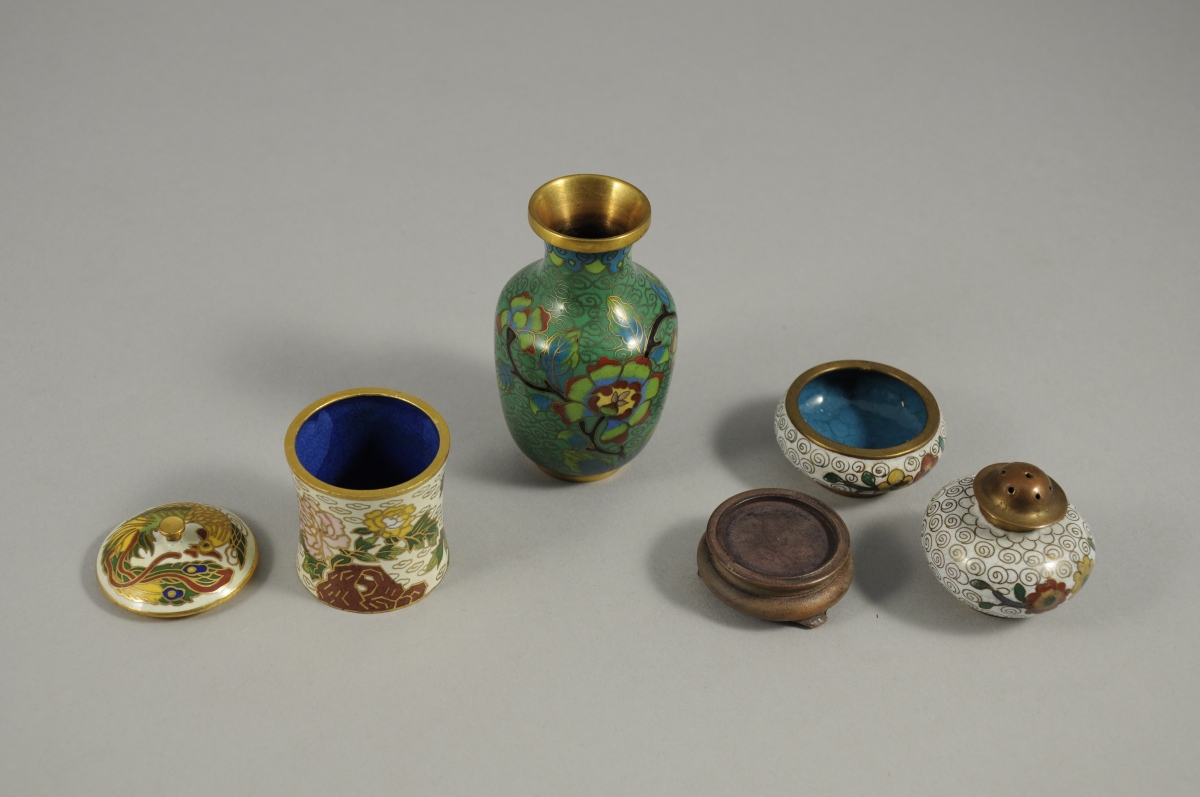 Réunion de trois objets décoratifs à décor d'émaux cloisonnés :