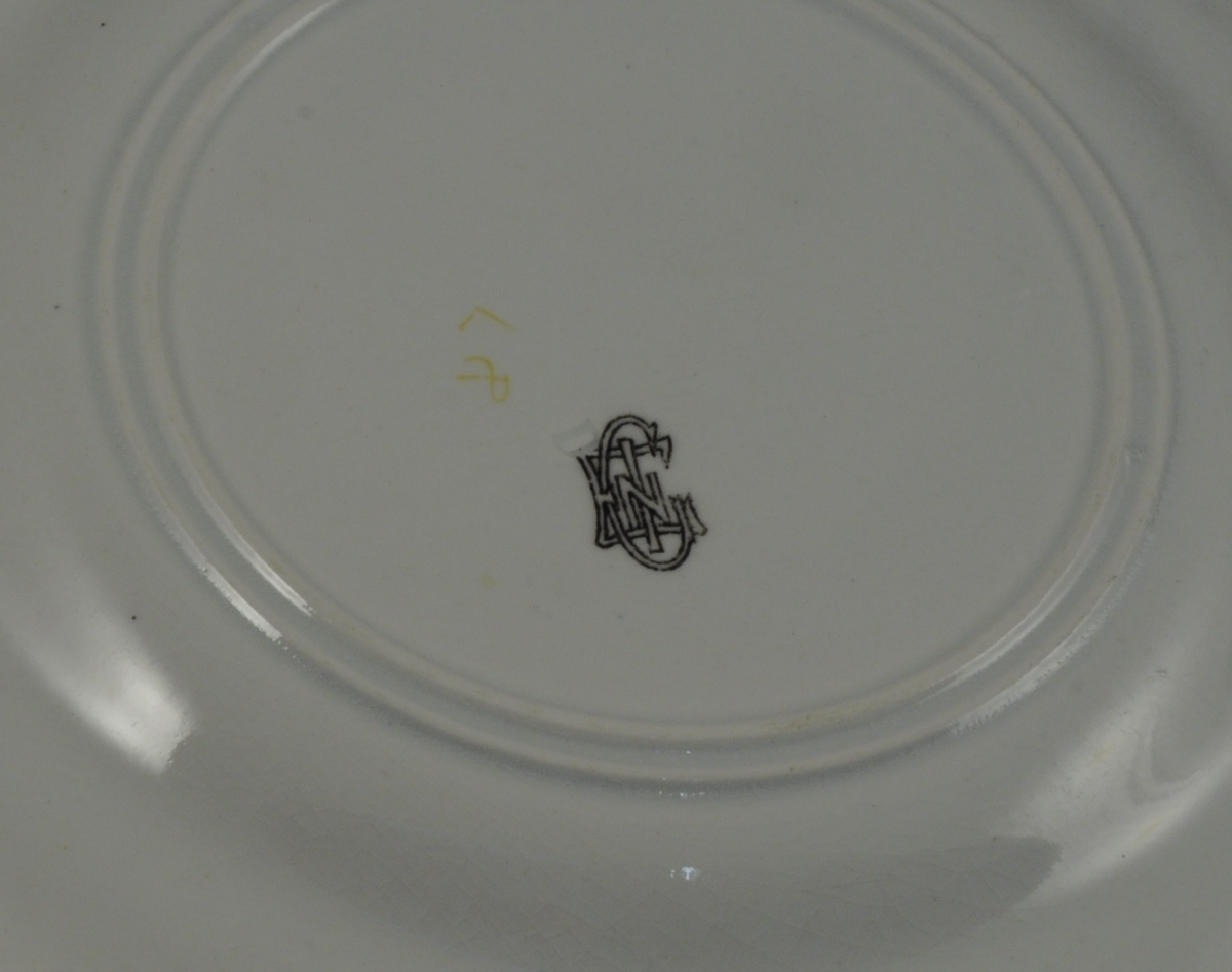 La plupart des pièces sont marquées au tampon de 1871-1875, ou au tampon figurant le monogramme de Gien, utilisé à partir de 1875. D'autres éléments portent le tampon du vendeur : Clain & Perrier, Paris, 238 Boul St-Germain, 45 Rue du Bac.