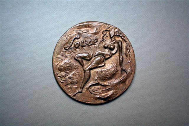 MÉDAILLE, br., Ø 124 mm, signée Despi, " La Loire " représentée par une femme dévêtue aux longs cheveux. SUP.
