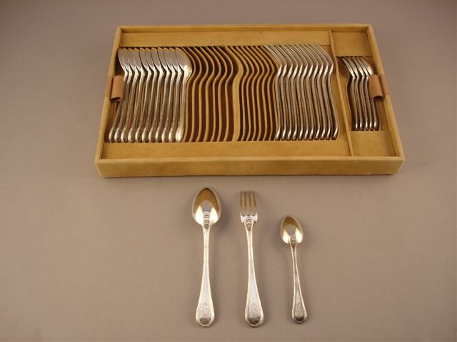 MÉNAGÈRE en argent de 107 pièces monogrammée BV. Modèle à...