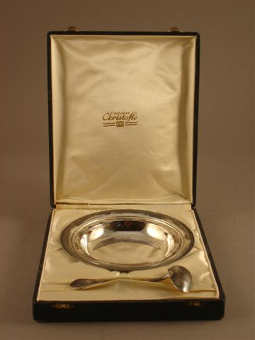 ASSIETTE À BOUILLIE ET CUILLÈRE en argent. Poinçon Minerve. XXème siècle.