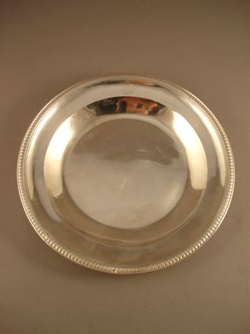 PLAT en argent de forme ronde. L'aile soulignée par une frise de feuilles d'eau. Porte le monogramme MC surmonté d'une couronne de marquis dans un écu. Poinçon Vieillard (Paris, 1819-1838) et poinçon de grosse garantie.