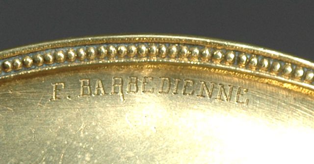 Signature gravée sur le bord inférieur de la coupelle : F. BARBEDIENNE, fin XIXème.