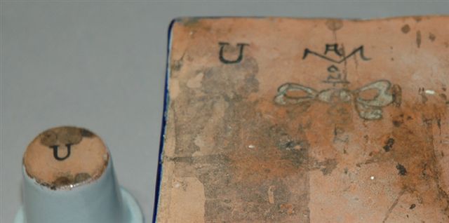 Faïences de NEVERS, signature AM pour ANTOINE MONTAGNON et nud vert, circa 1875 / 1889. (petits éclats sous bouchon).