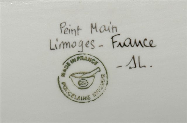 Marque (encrée noir), LIMOGES France -1L et cachet au pilon, circa début XXème.