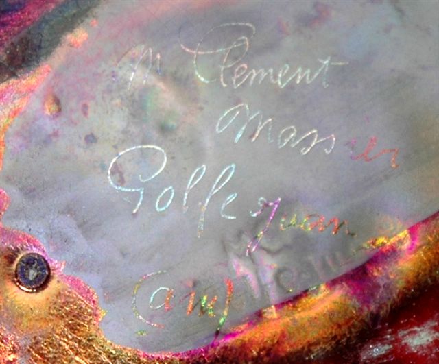 Signature en creux à la pointe, CLÉMENT MASSIER Golf Juan (am) vers 1910.