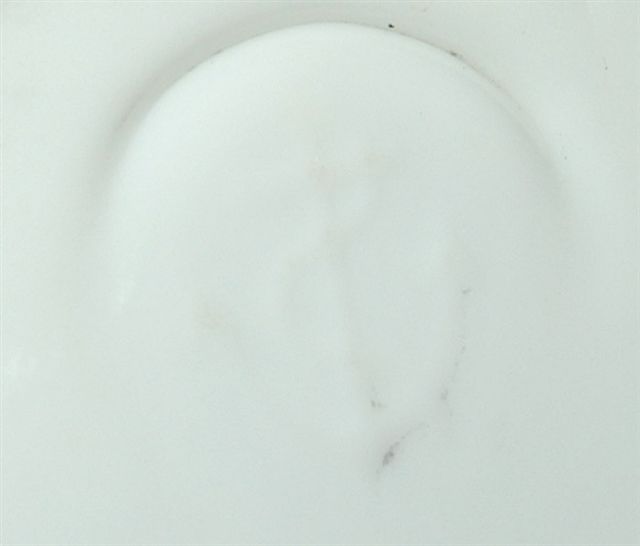 ENCRIER porcelaine à bouchon charnière en régule patine argenté, forme lentille presse papier à décor godronné, pour la marque d'encre " PARIS-LE CORDIER-ENCRE de la MARINE " lettrage rouge.
