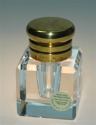 ENCRIER MONTBLANC MEISTERSTUCK  en cristal soufflé de forme cubique...