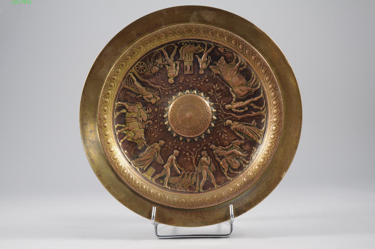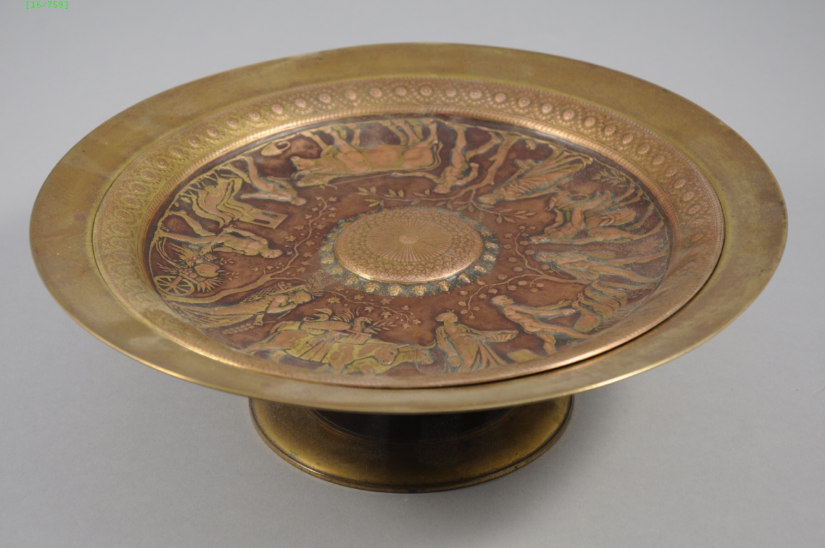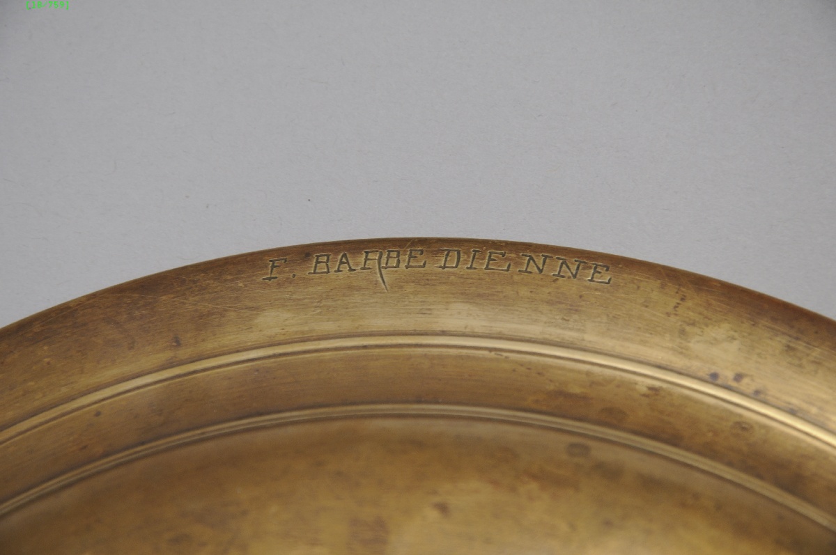Ferdinand LEVILLAIN (1837-1905). COUPE montée en bronze à patine cuivrée et métal représentant les Travaux des champs. Signée et daté 1879.