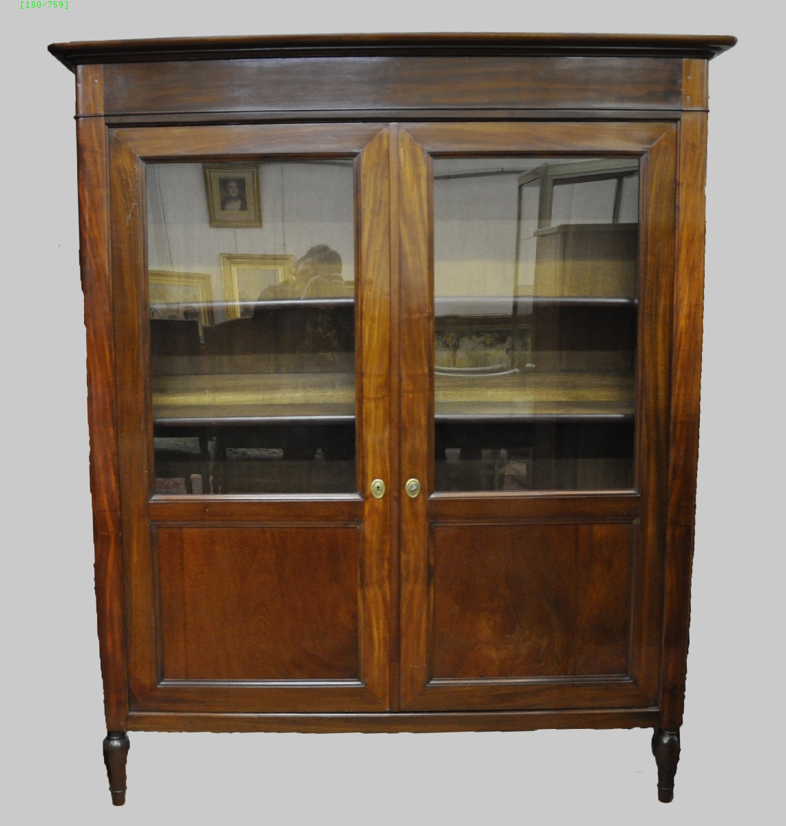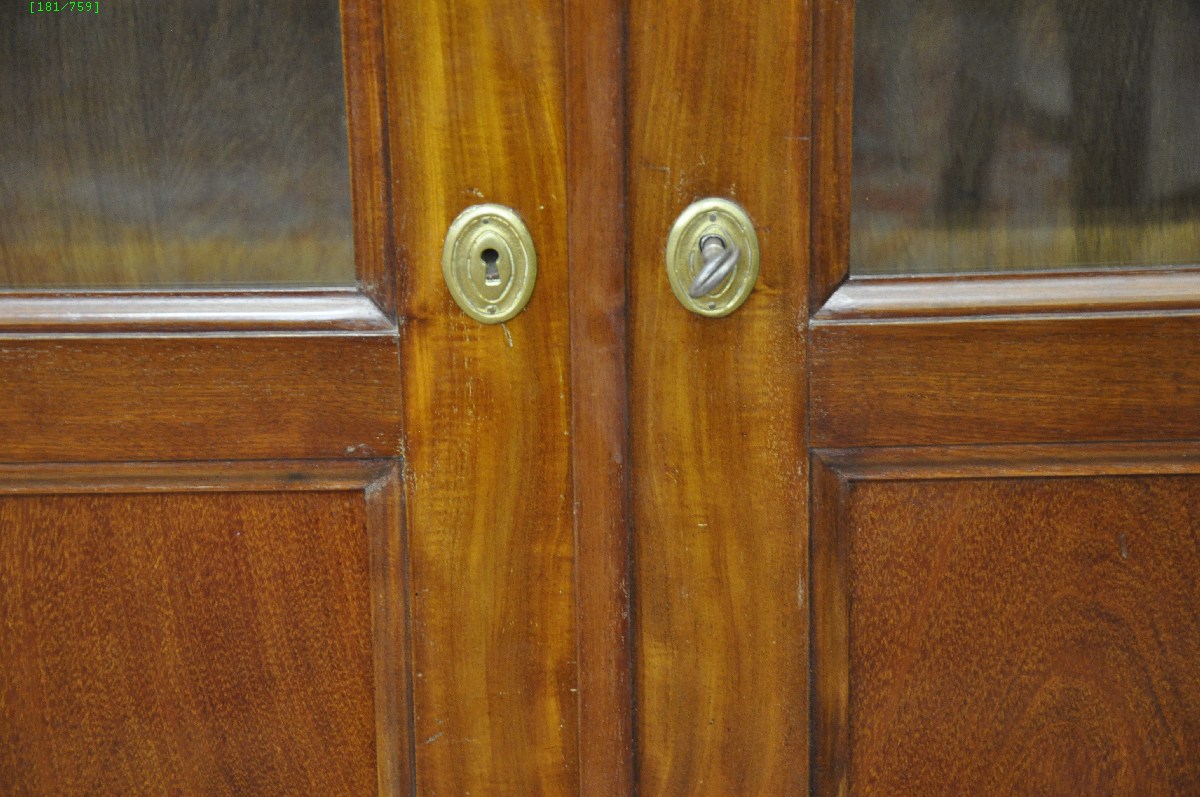 BIBLIOTHÈQUE en acajou et placage d'acajou. Pieds tournés. Entrées de serrures de forme ovale en laiton.