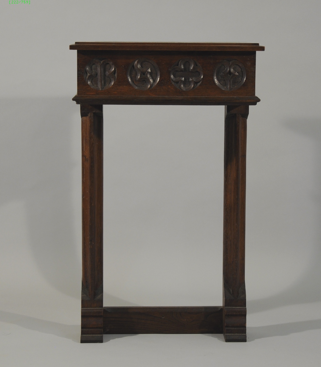 CONSOLE en chêne. Ceinture ornée de quatre rosaces sculptées.