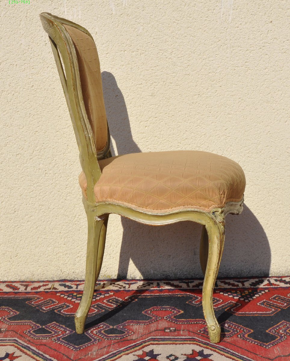 CHAISE cabriolet en bois laqué blanc. Dossier légèrement violonné. Pieds cambrés et nervurés. Décor sculpté de fleurs.