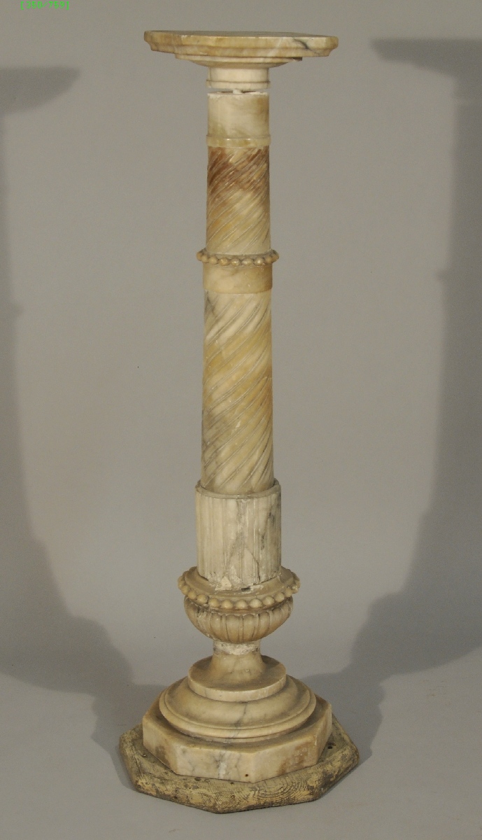COLONNE en albâtre. Fût à cannelures puis à godrons torses. Base octogonale, puis ronde, à godrons et frise de perles.