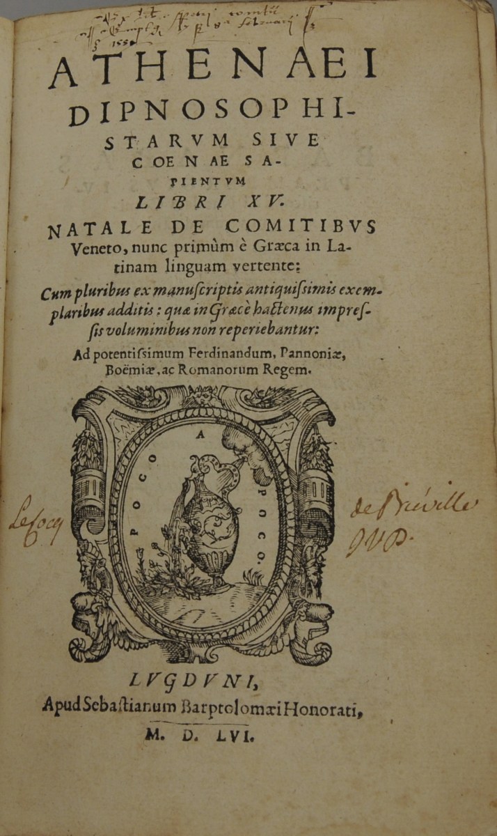 Athenaei dipnosophistarum sive coen ae sapientum libri XV natale de comitibus ... Lugduni, 1556.