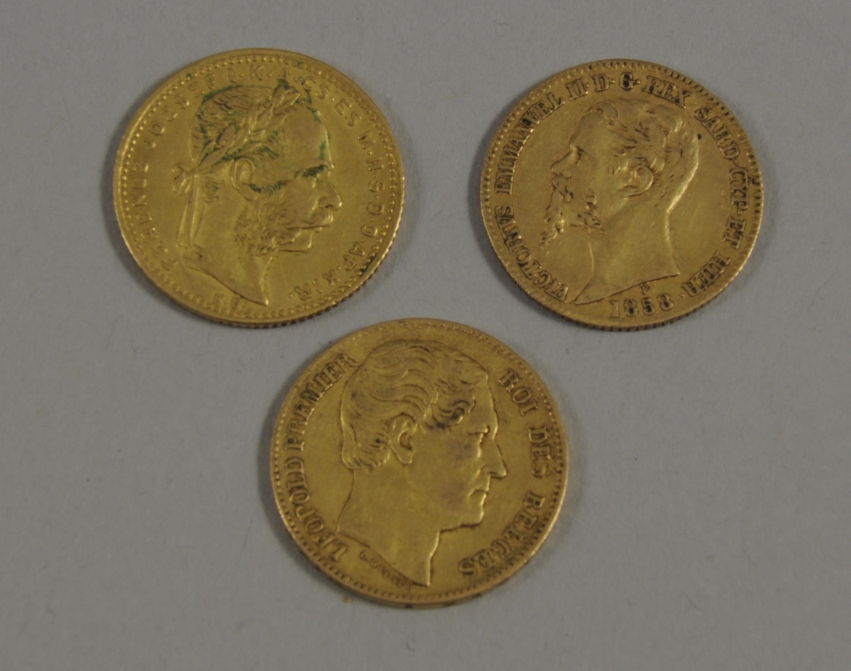BELGIQUE, ITALIE, AUTRICHE-HONGRIE, lot de 3 pièces or de 20 F.