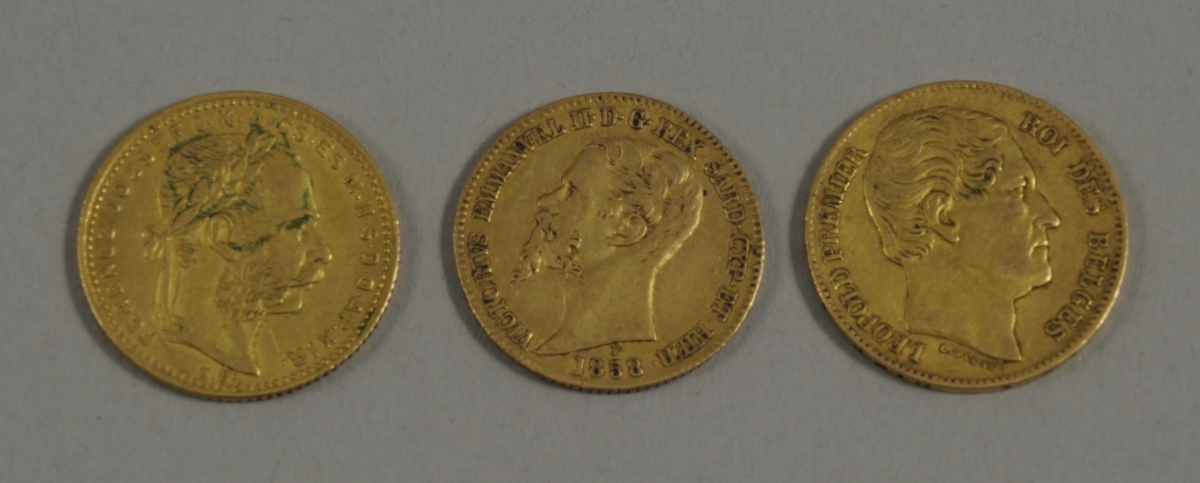 BELGIQUE, ITALIE, AUTRICHE-HONGRIE, lot de 3 pièces or de 20...