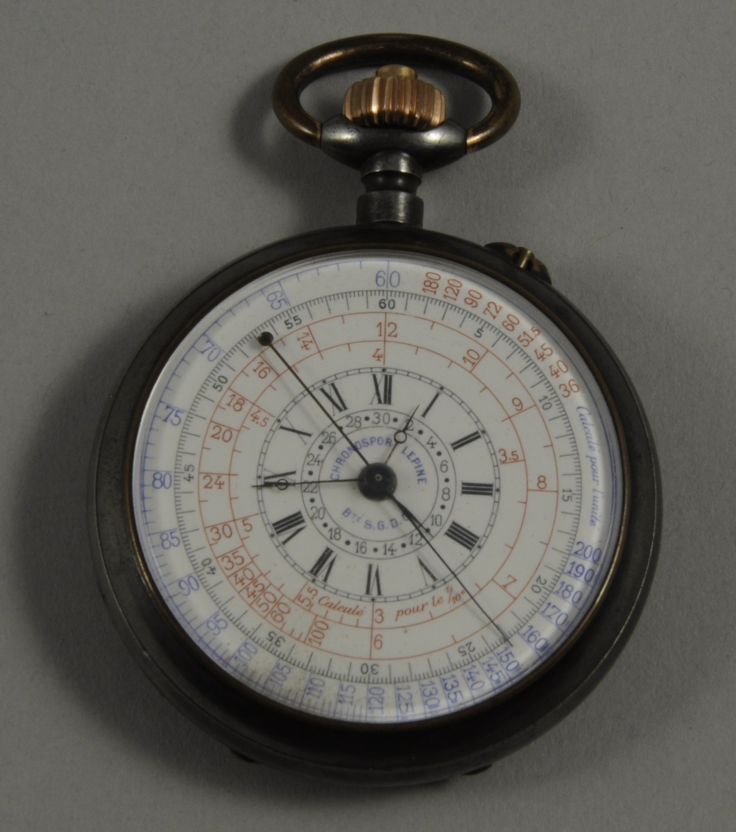 MONTRE CHRONOSPORT LÉPINE, en acier. Cadran blanc émaillé nombreux chiffres