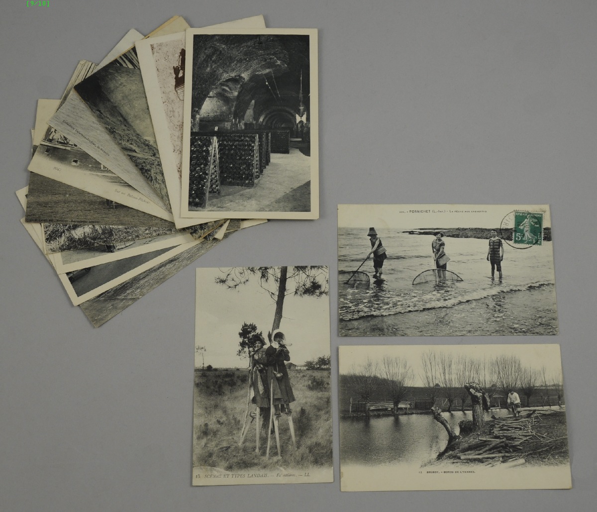 Lot d'environ 16 CARTES POSTALES sur le thème des métiers dont : échassières, vanneurs, pêcheurs, salinier.