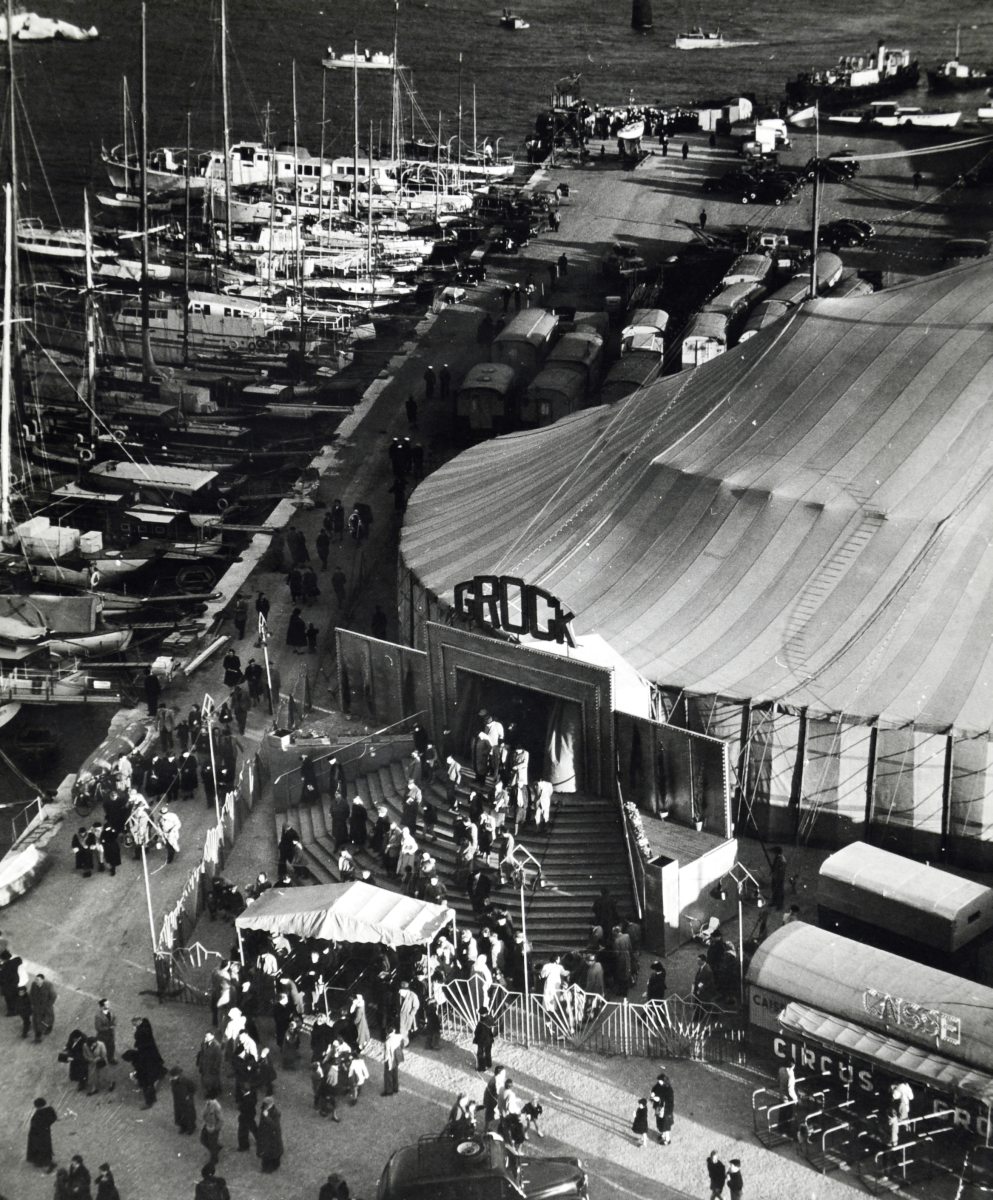 Circus Grock, installation du chapiteau, Toulon, 1954