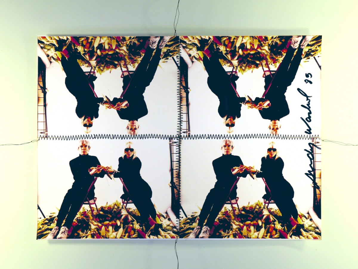 4 épreuves argentiques en couleurs reliées entre elles par une couture. L'ensemble est encadré. Large signature sur le côté droit de l'oeuvre "Andy Warhol 1985".