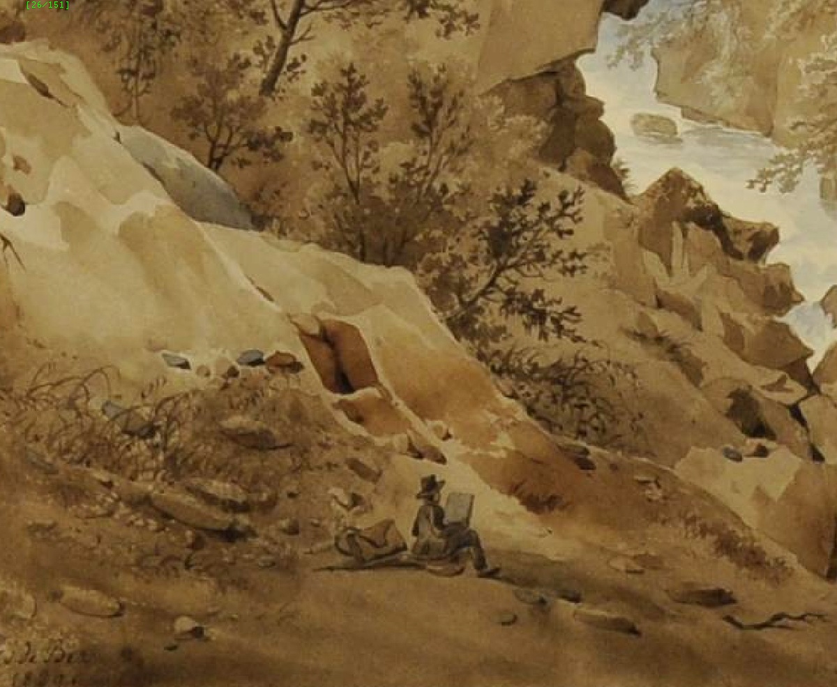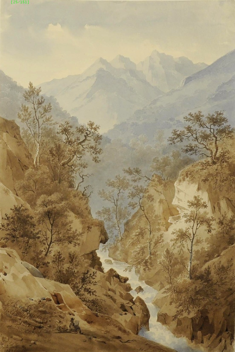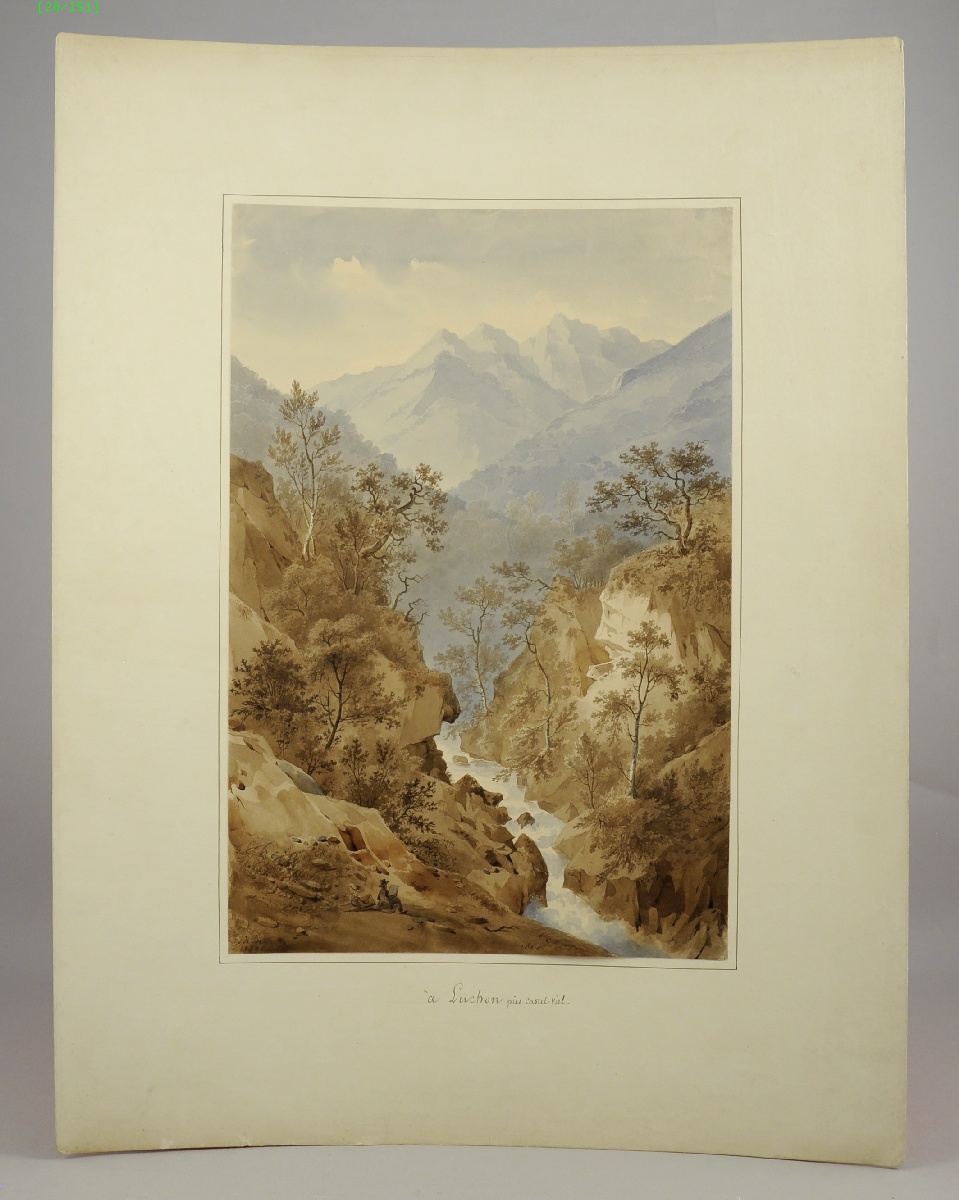 Aquarelle signée et datée 1829, contrecollée et titrée sur le carton.