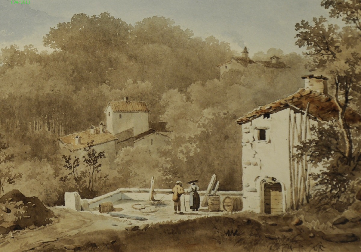 Aquarelle signée et datée 1832, contrecollée et titrée sur le carton.