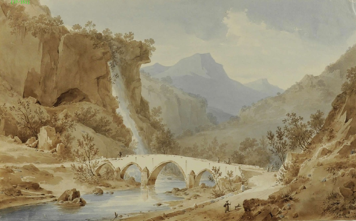 Aquarelle signée et datée 1830, contrecollée et titrée sur le carton.