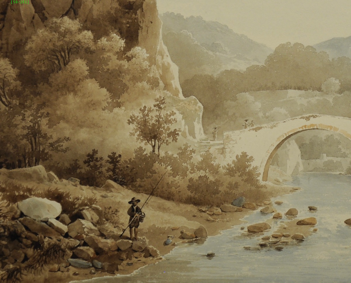 Aquarelle signée et datée 1832, contrecollée et titrée sur le carton.