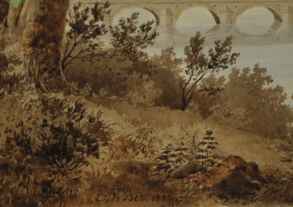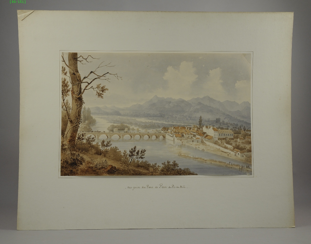 Aquarelle signée et datée 1832, contrecollée et titrée sur le carton.