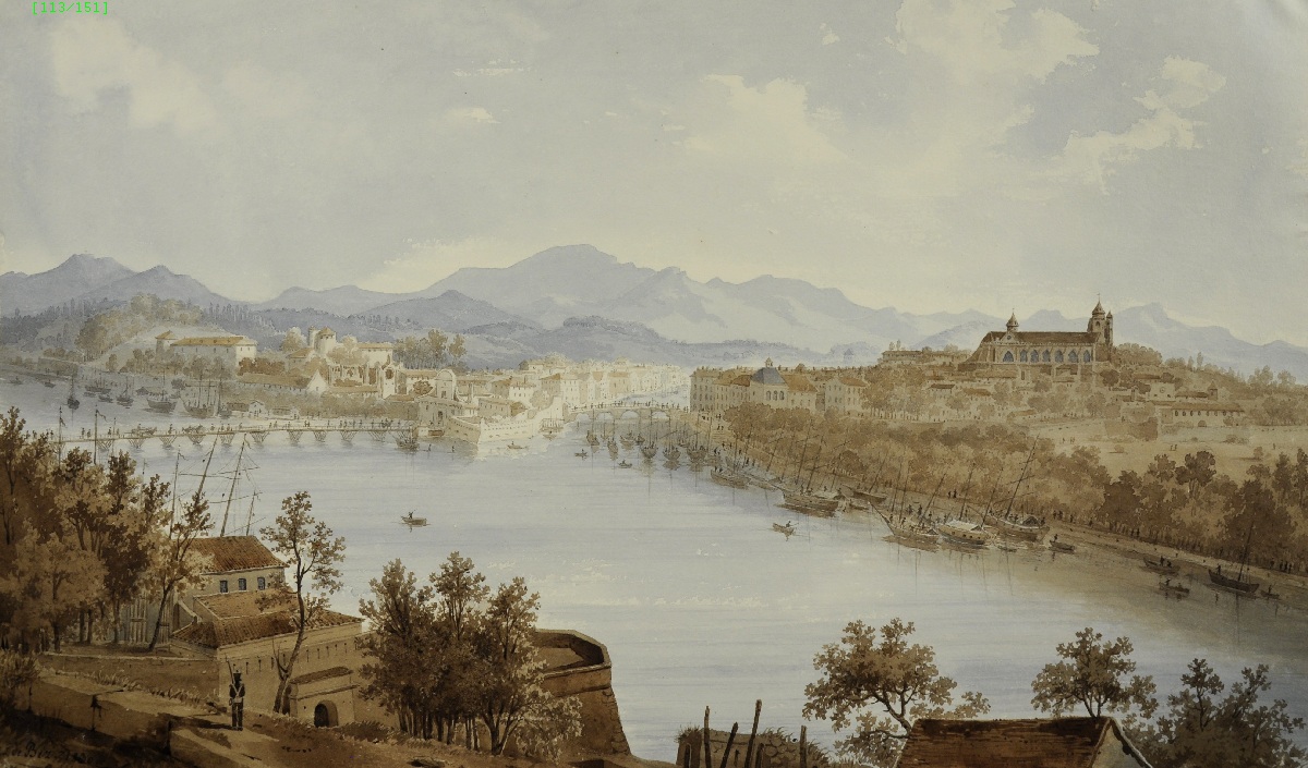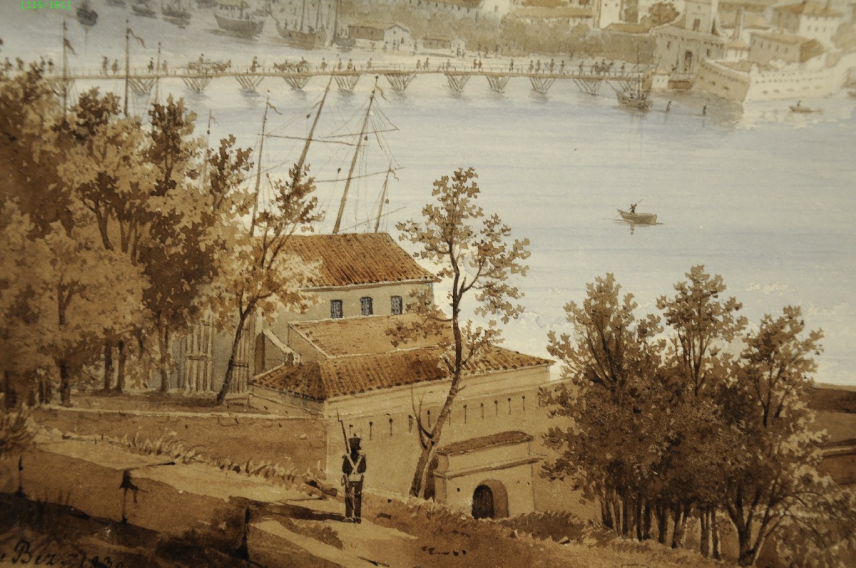 Aquarelle signée et datée 1830, contrecollée et titrée sur le carton.