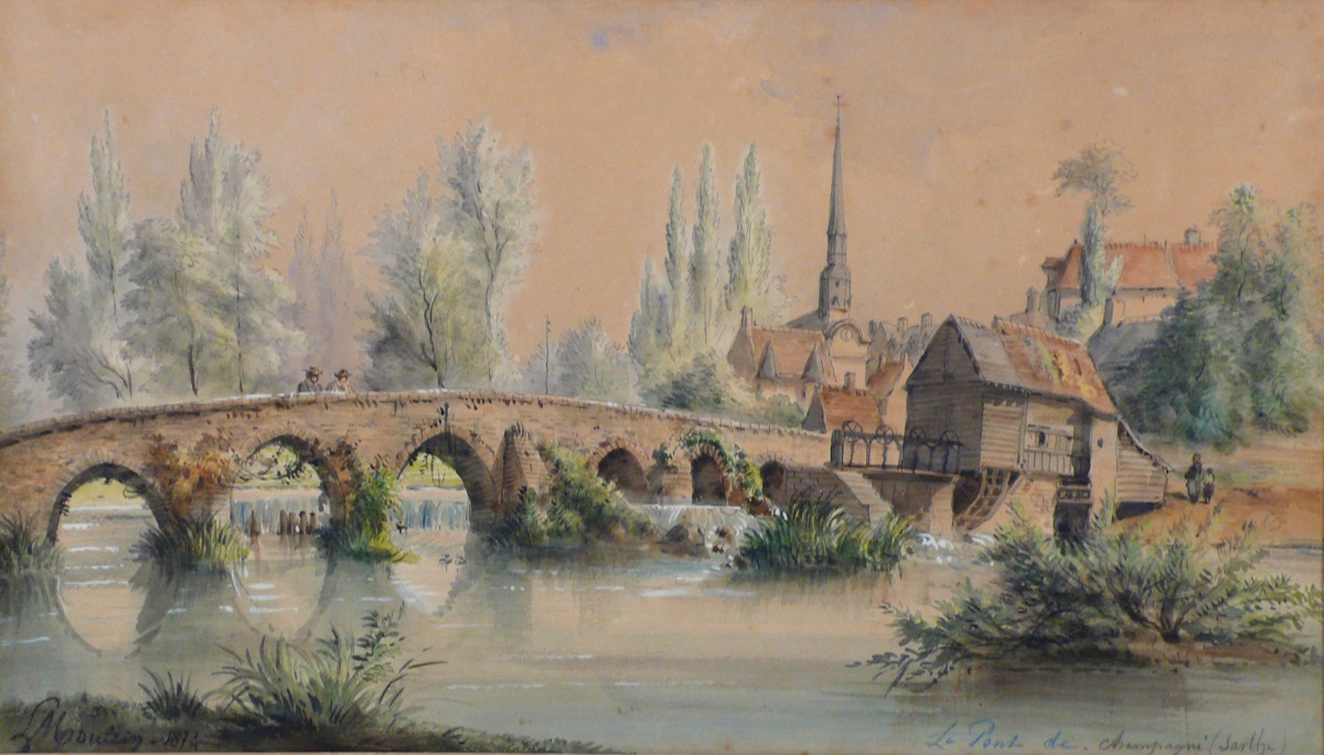 "Le Pont de Champagné, Sarthe" et " Moulin L'Évêque au Mans"