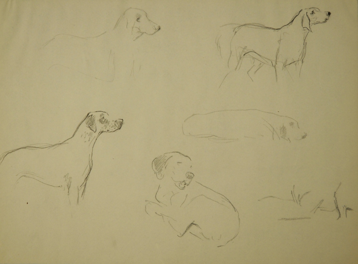 Ensemble de 11 esquisses figurant des chiens et portant le cachet R. Reboussin.