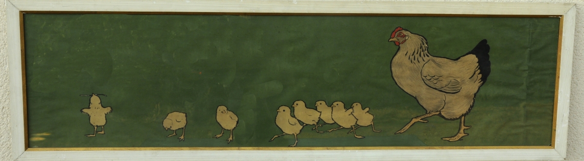 RABIER Benjamin, dans le goût de.Poule et poussins.Chromolithographie.40 x 159...