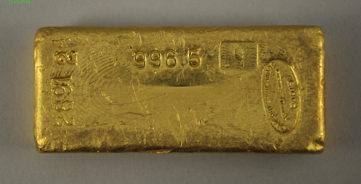 LINGOT OR. Numéros : 2891 2 et 996.5. Cachet " Caplain Saint André, affineur fondeur Paris ".