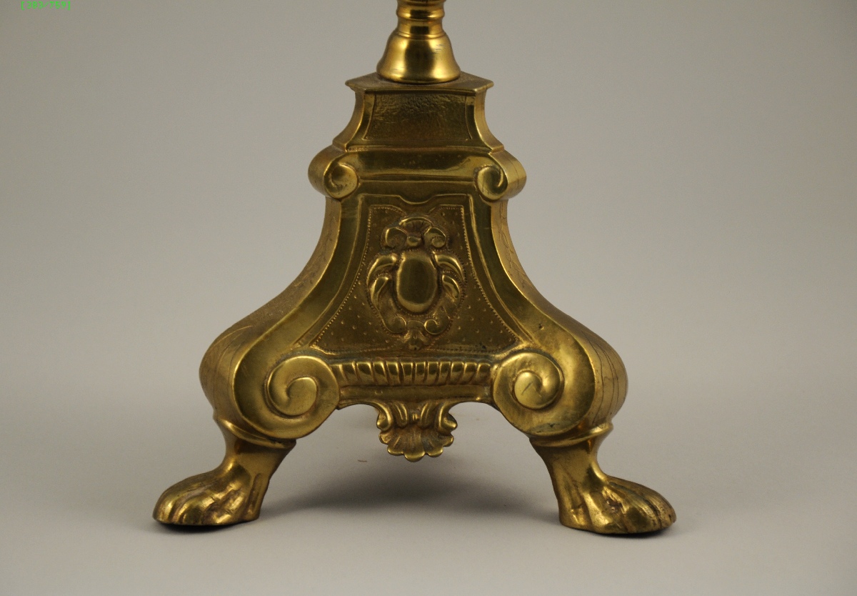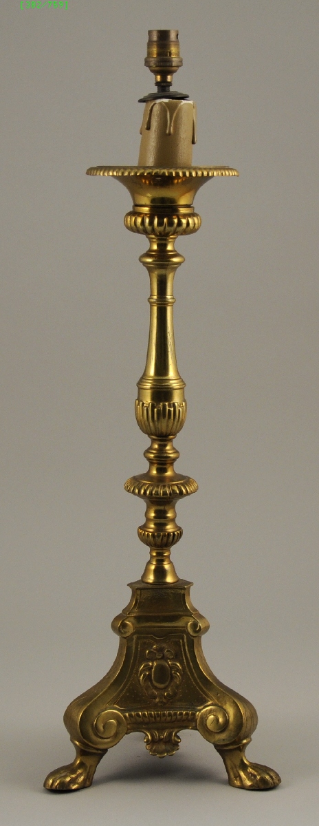 PIQUE-CIERGE tripode en laiton. Fût balustre.