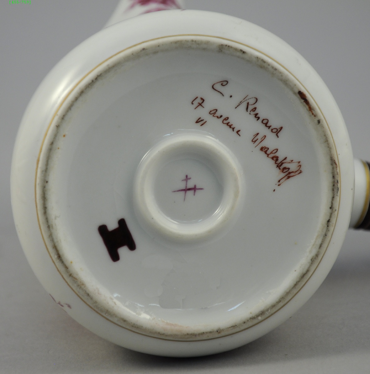 Marque aux épées croisées et inscription au revers : "C. Renard 17 avenue Malakoff VI".