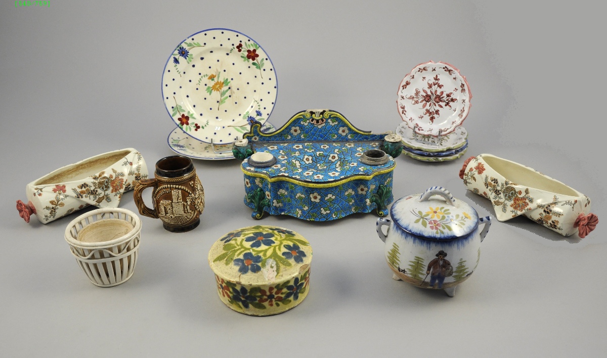 -CHAROLLES. un pot à sucre en faïence à décor de fleurs et d'un fermier tenant un panier,