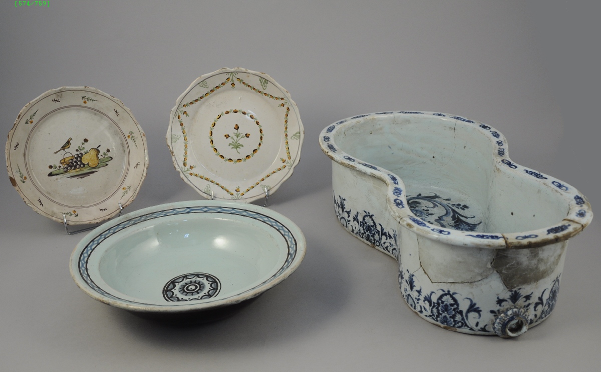 Réunion de FAÏENCES stannifères à décor de grand feu, du XVIIIe ou du début du XIXe, comprenant :