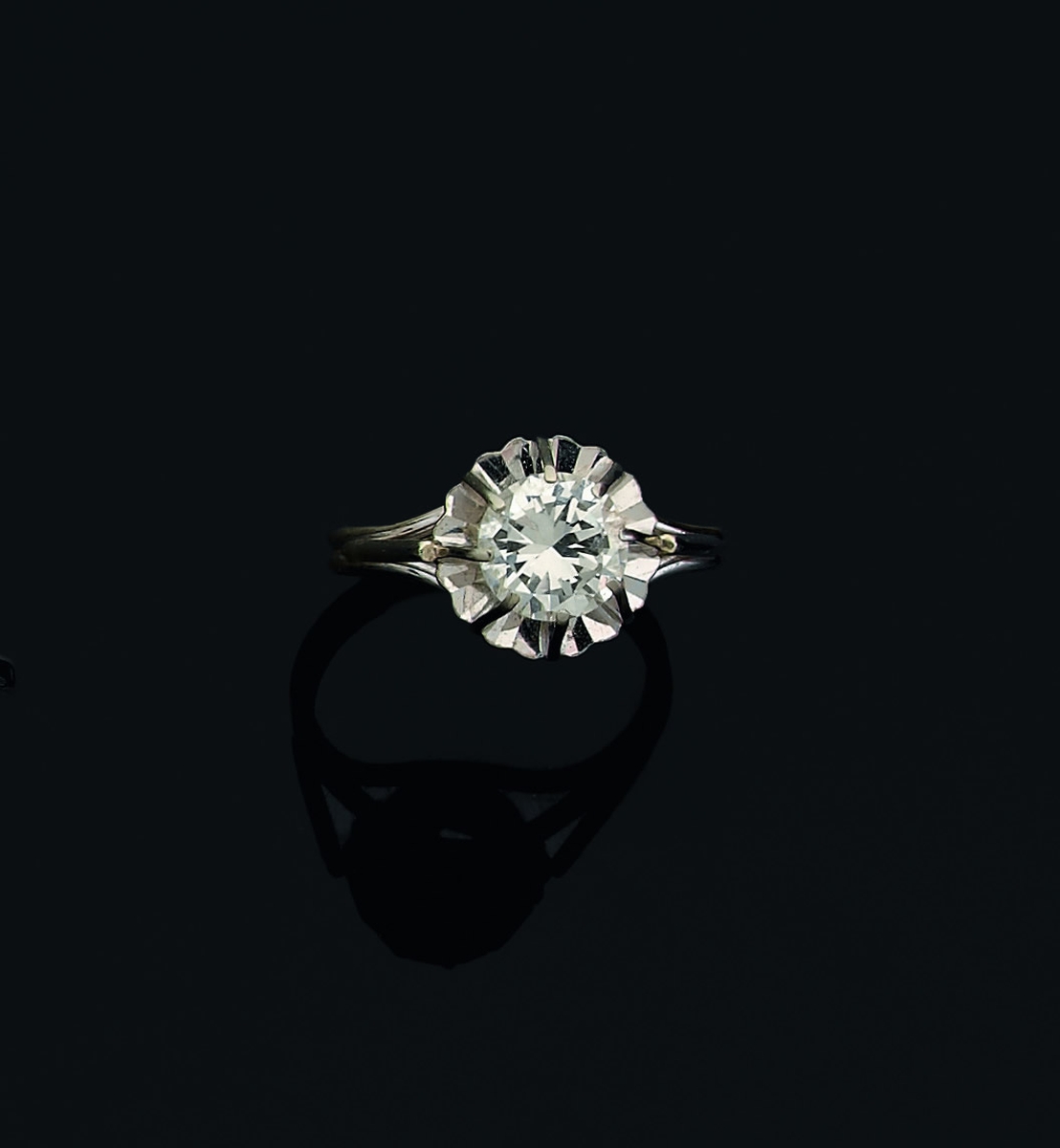 BAGUE sertie d'un diamant solitaire de forme ronde et de taille brillant, d'environ 1 carat, supposé JK VS, la monture à huit griffes en or gris.