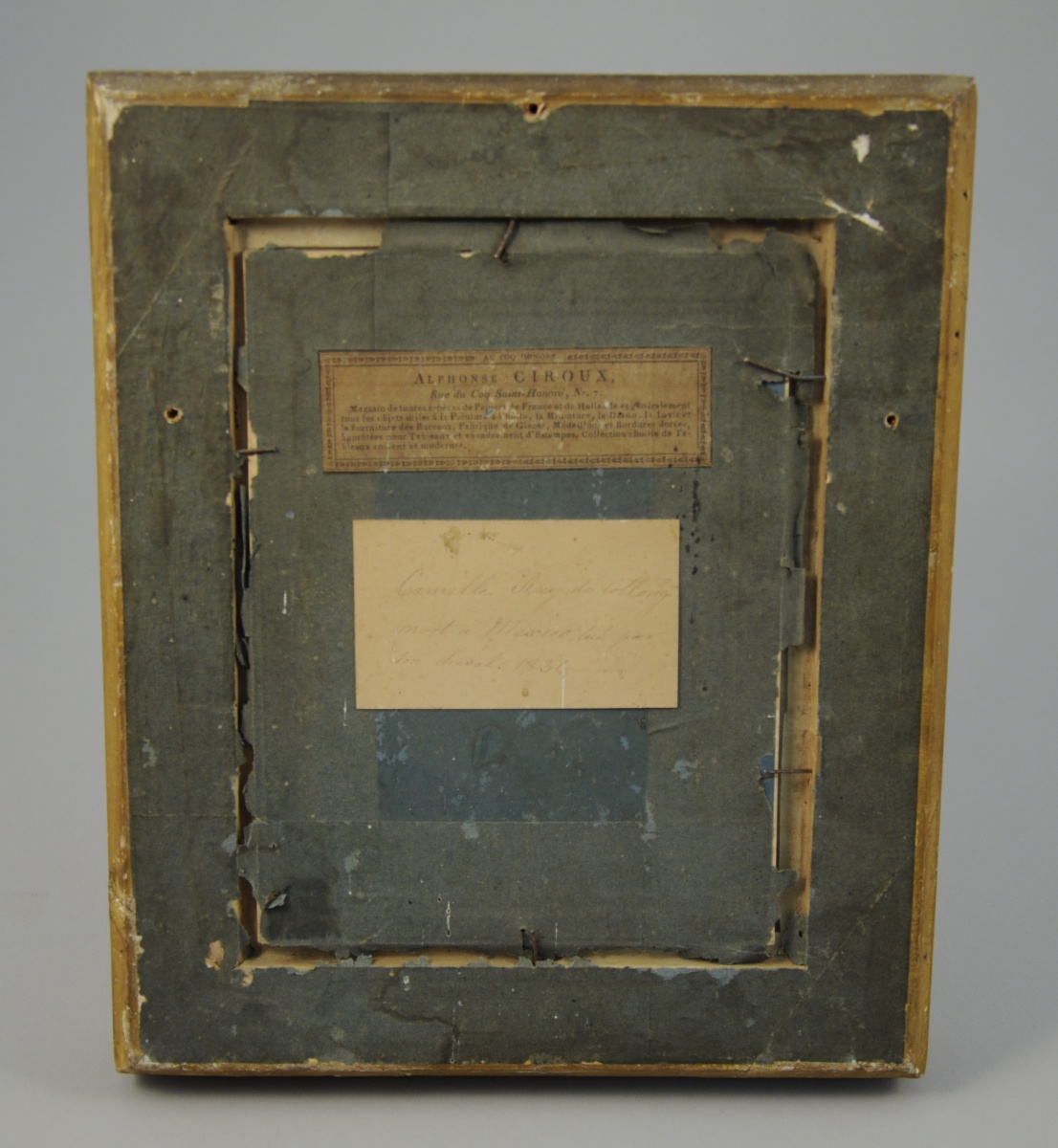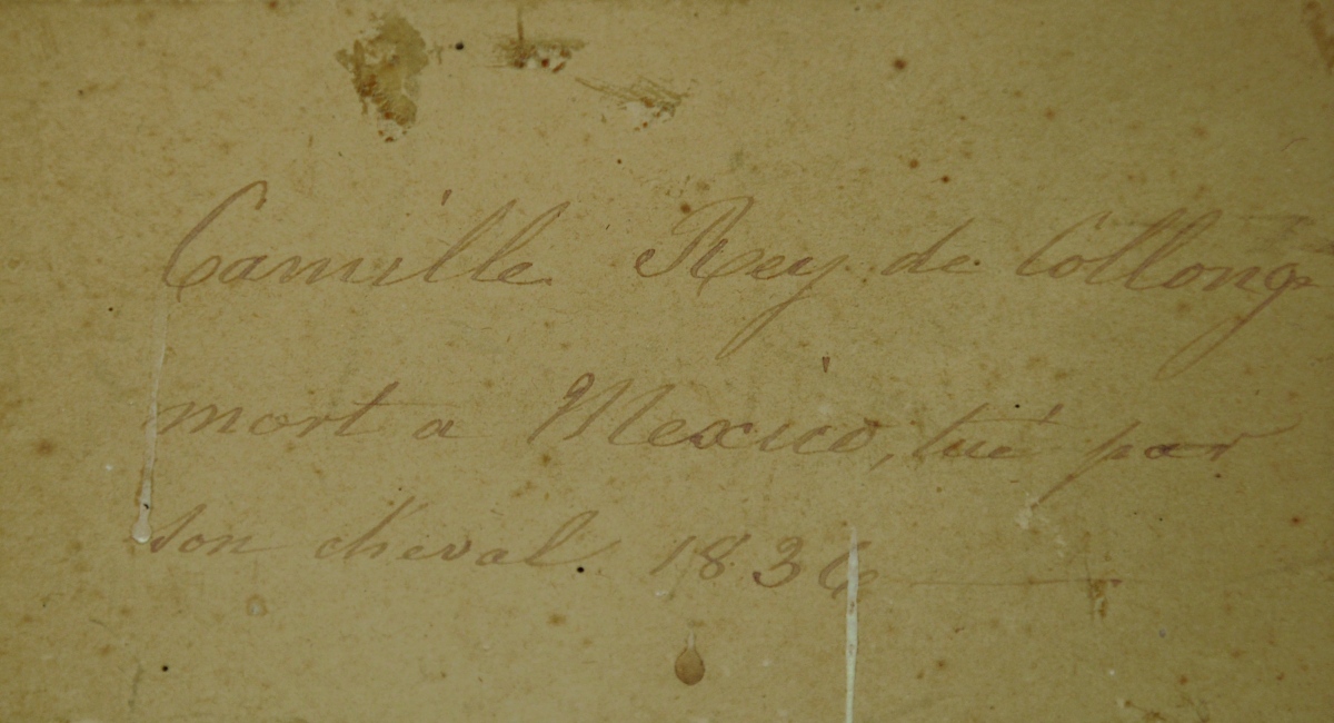 Porte une ancienne étiquette au dos Camille Rey de Collonge / mort à Mexico tué par / son cheval 1834.