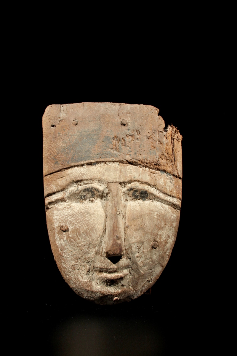 Il représente le visage d'un personnage aux yeux fardés, coiffé de la lourde perruque.