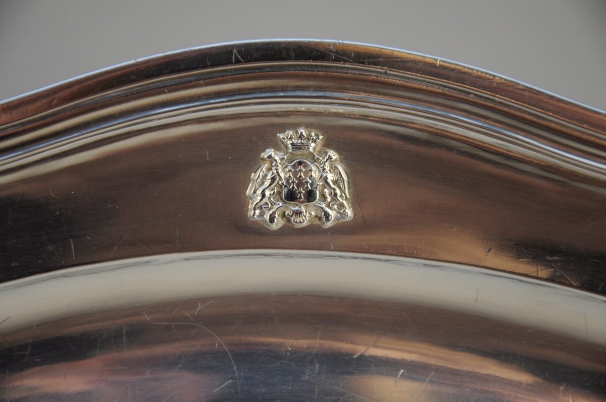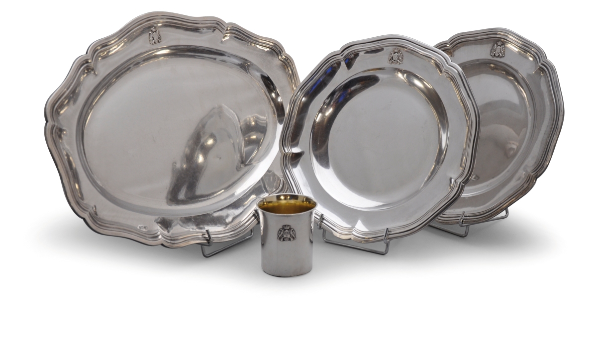 Orfèvrerie aux armes en applique du Marquis de Puivert, écu d'argent à six mouchetures d'hermine.