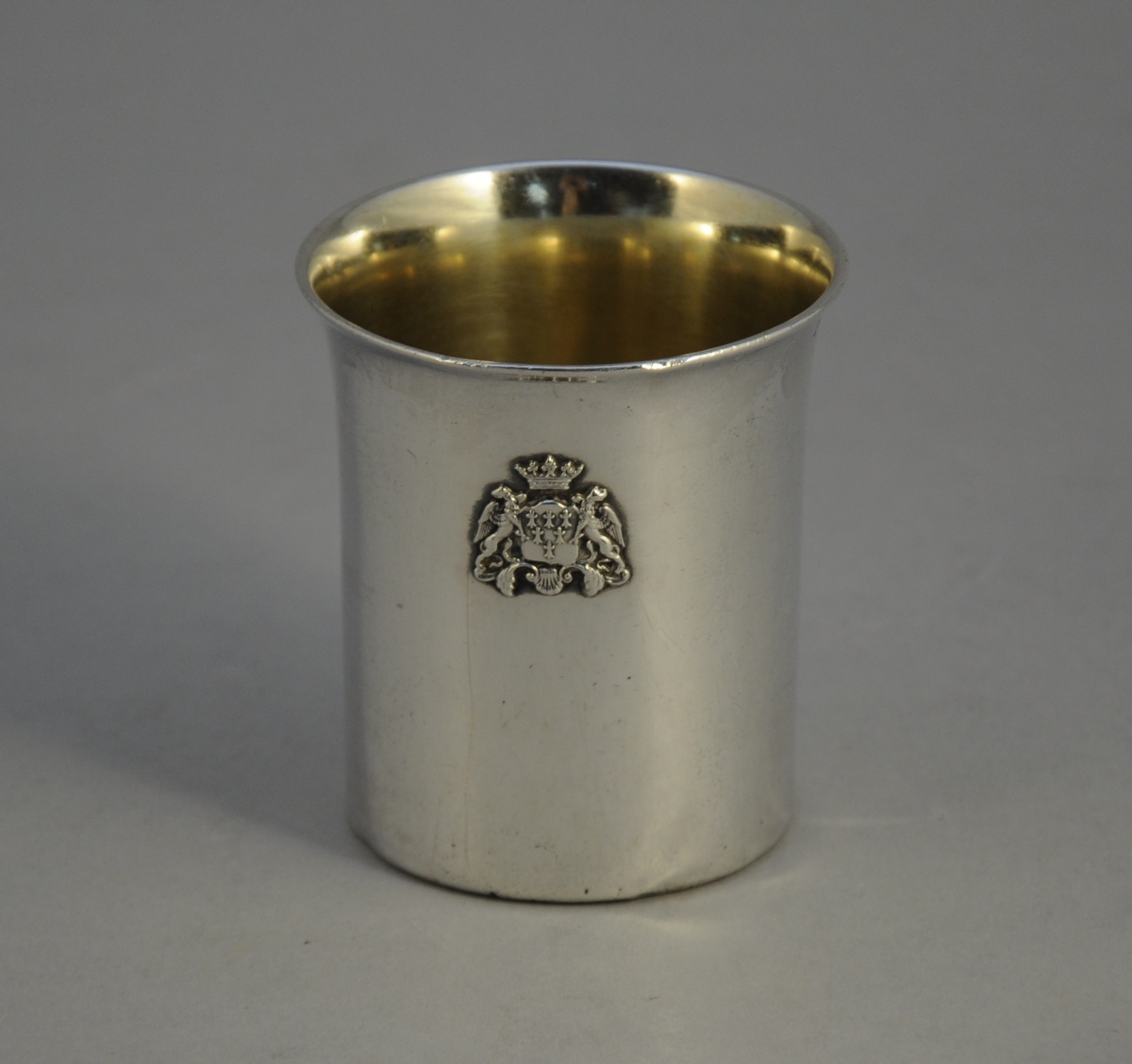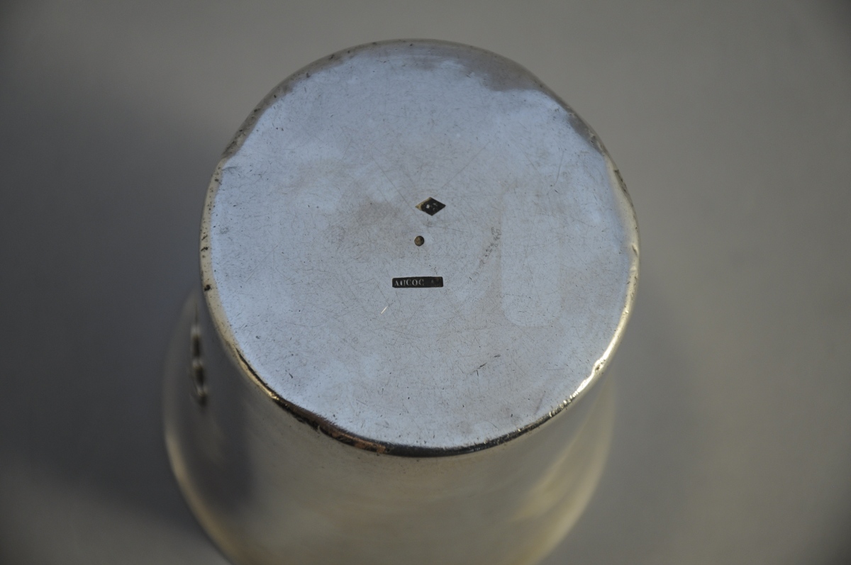 Timbale droite, bord évasé, intérieur vermeil. Haut. 8 cm., Poids 142 g.