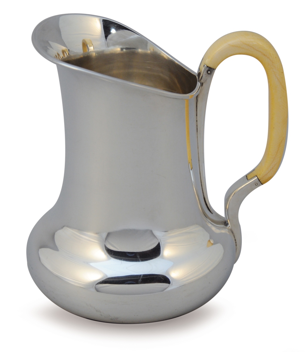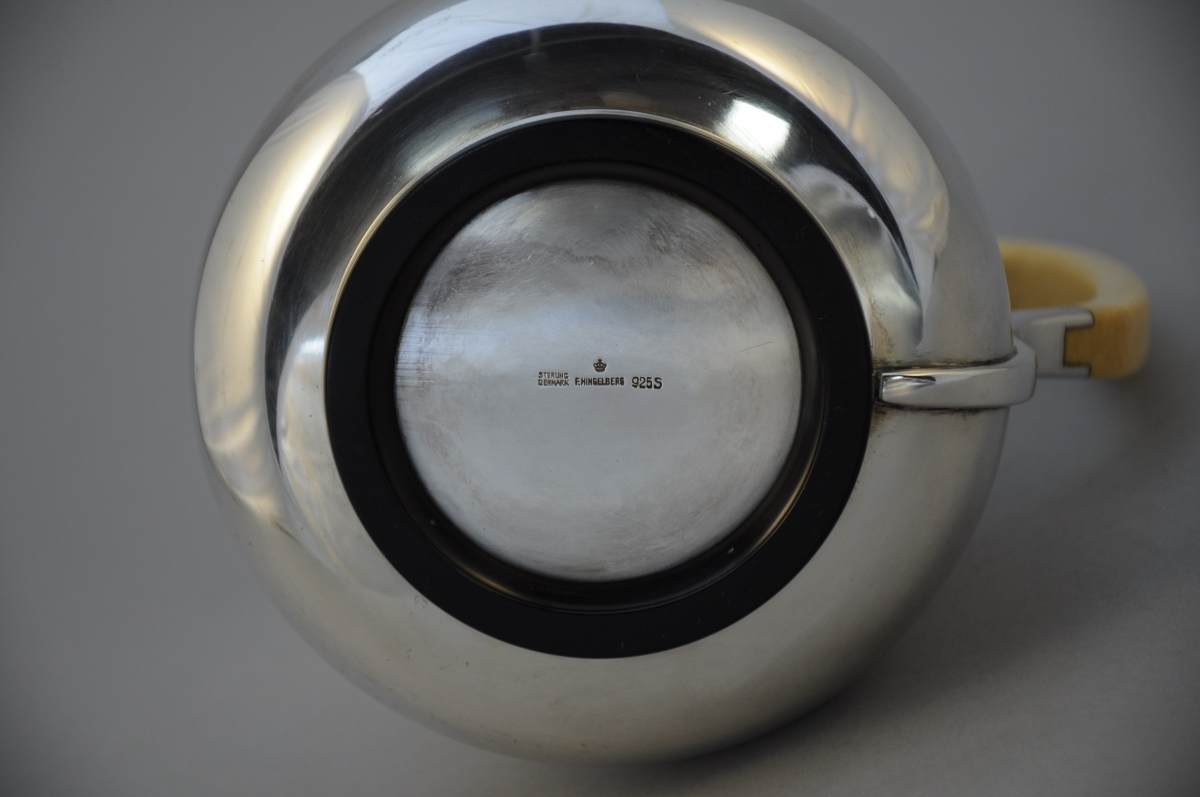 FRANZ HINGELBERG. PICHET en argent. Anse en ivoire ; piédouche en ébonite.
