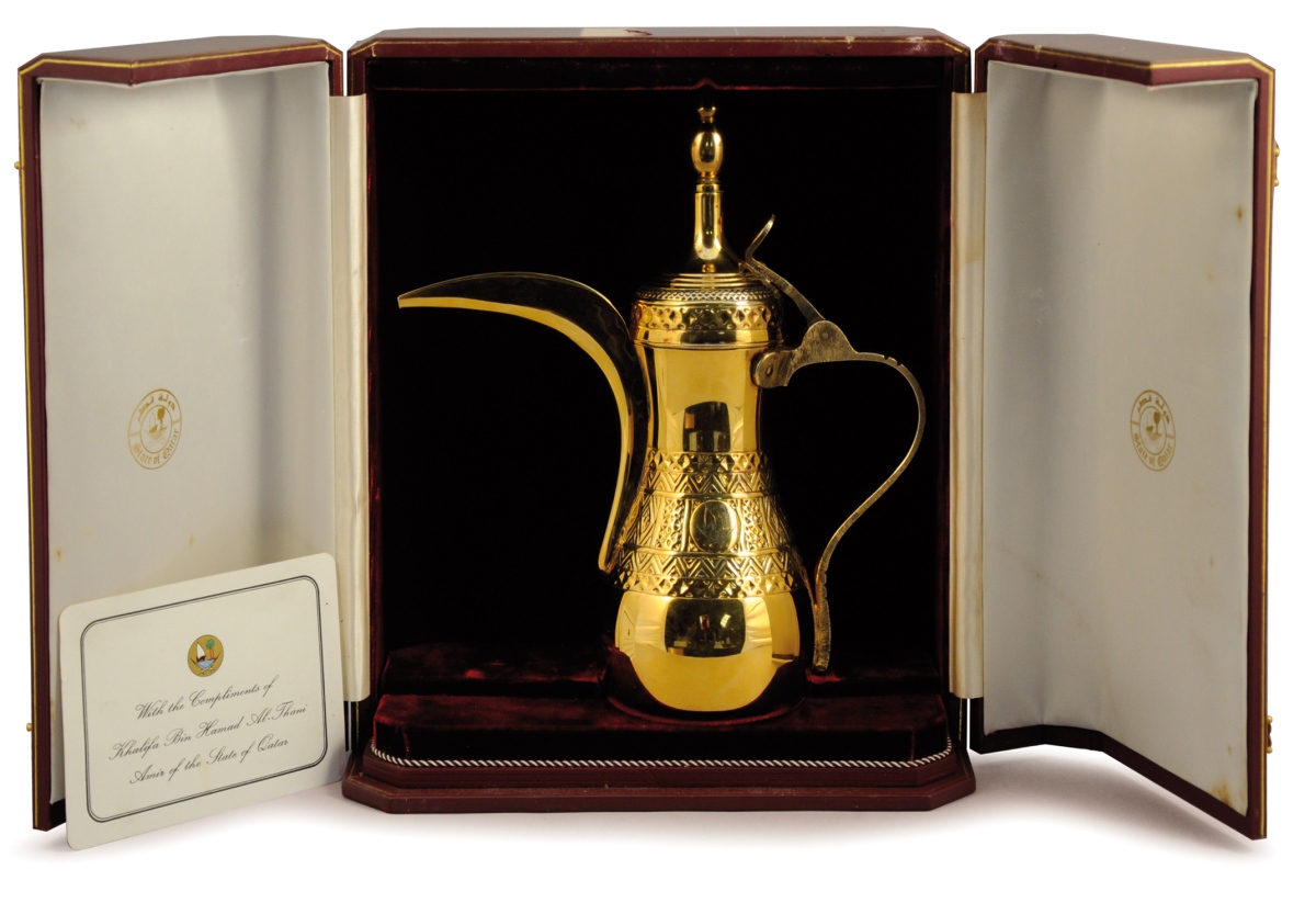 VERSEUSE en vermeil repoussé, aux armes du Sultan du Qatar....