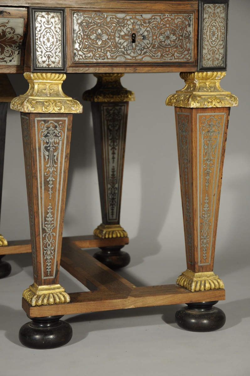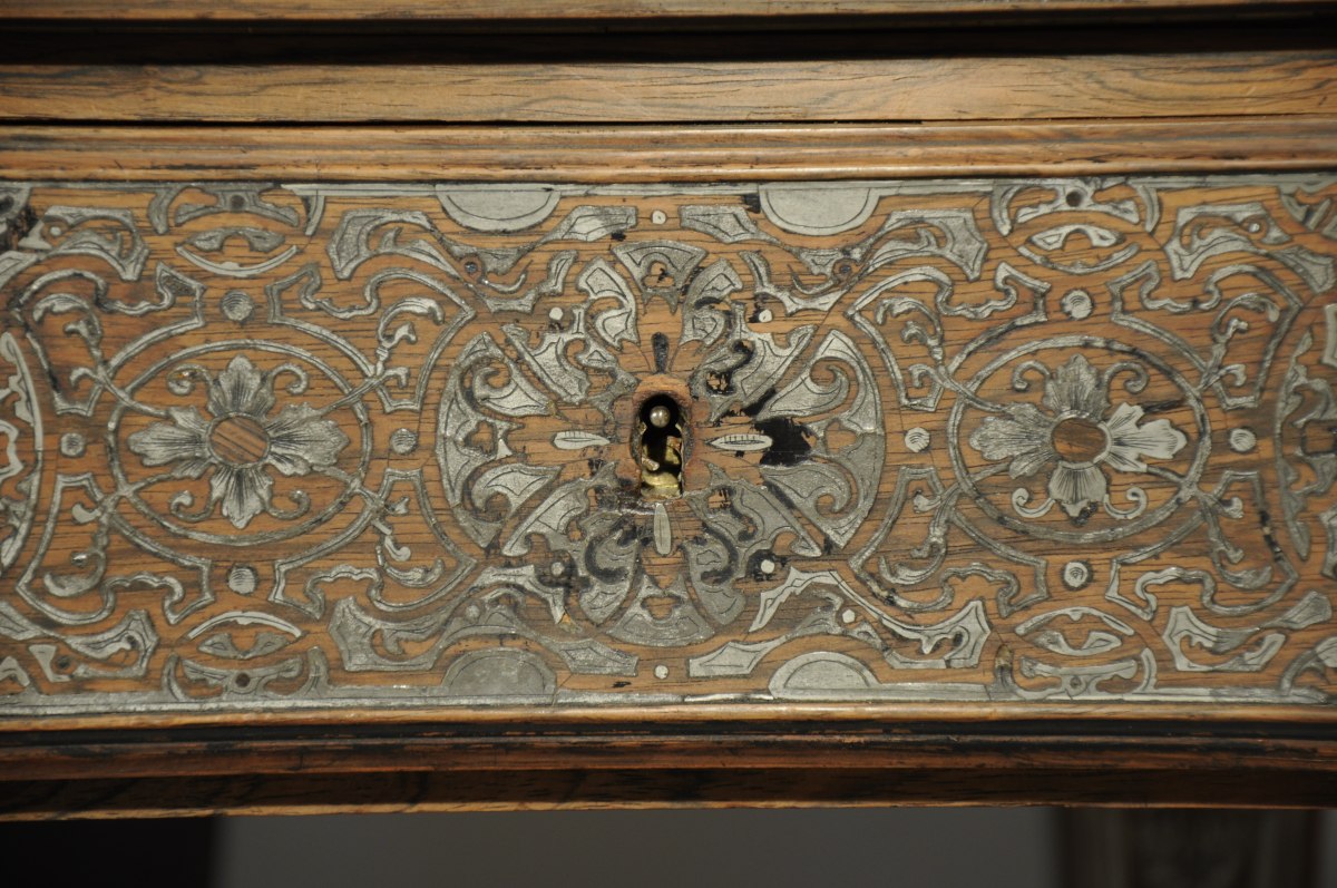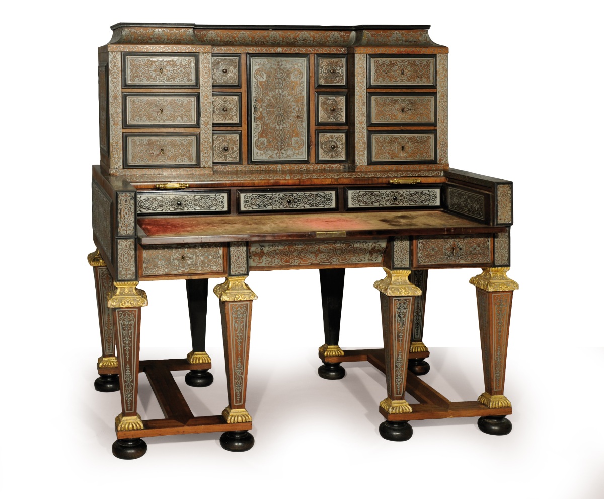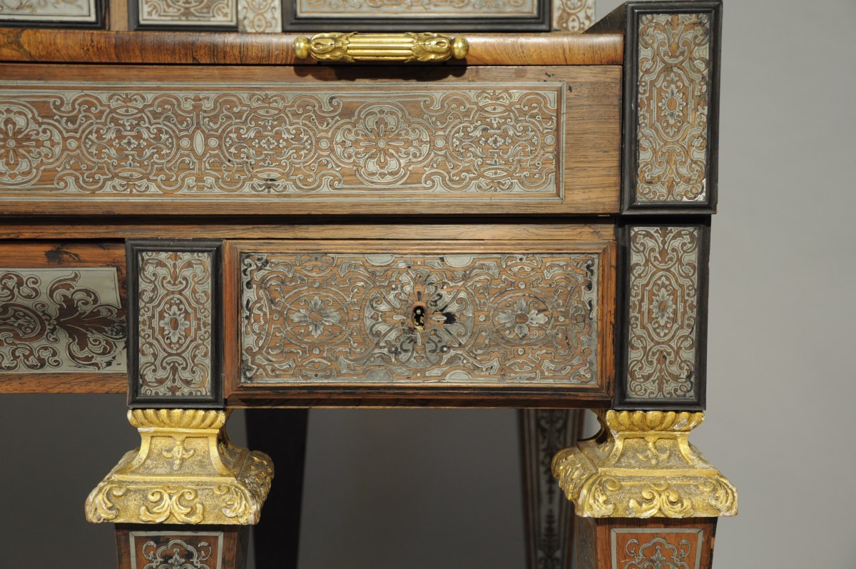 Un bureau au piétement similaire par André-Charles Boulle (1642, Gueldre - 1732, Paris), datant de la fin du XVIIe siècle, est conservé par le Centre des Monuments Nationaux dans la chambre de Louis XIII, au château de Jossigny en Seine-et-Marne.