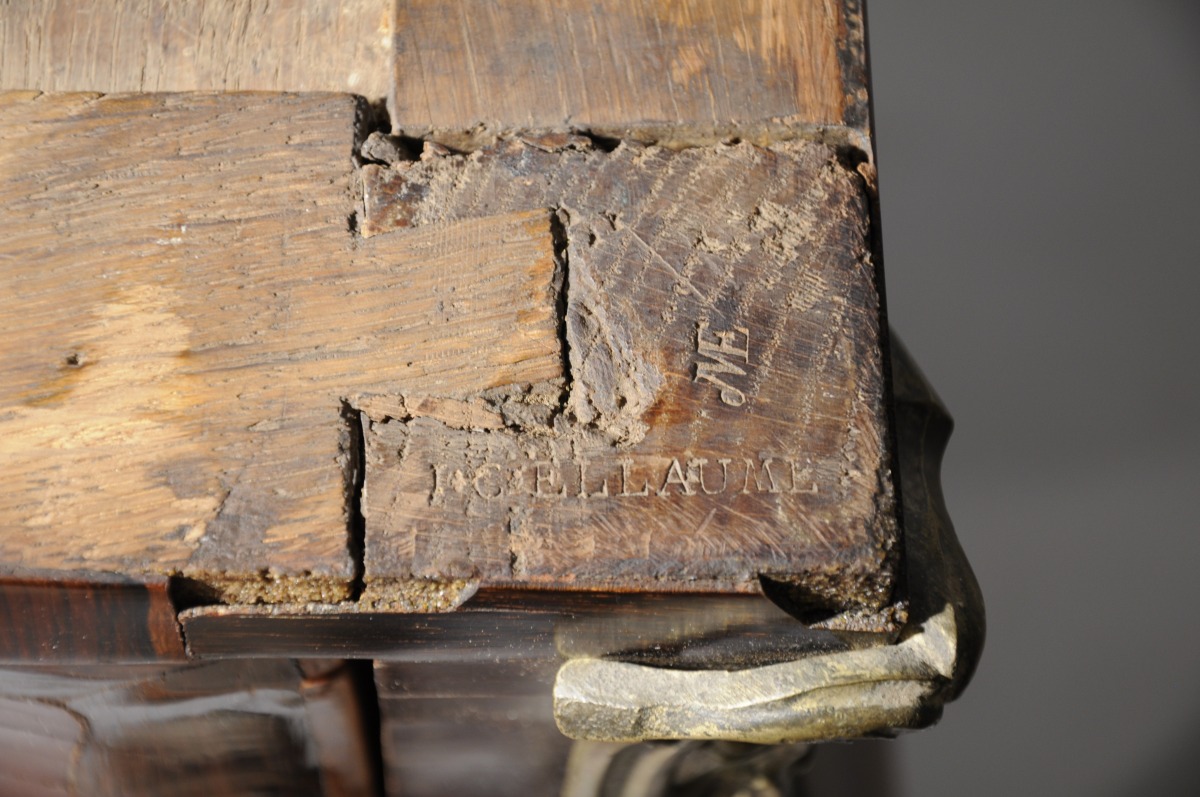 Jean-Charles Ellaume, dit Alleaume, est reçu maître le 6 novembre 1754. Il réalise, dans son atelier de la rue Traversière, des commodes de style Louis XV, en employant généralement le placage en frise. Il travaille également pour des marchands et des confrères ébénistes, tels que Boudin ou Tuart. (Kjellberg Pierre, Le Mobilier français du XVIIIe siècle, Dictionnaire des ébénistes et des menuisiers).