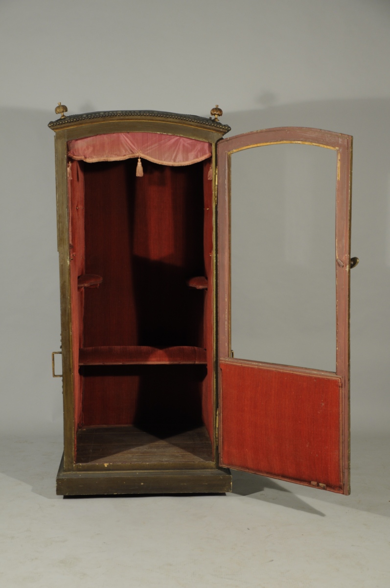 Intérieur garni de velours rouge, avec siège et deux accotoirs.
